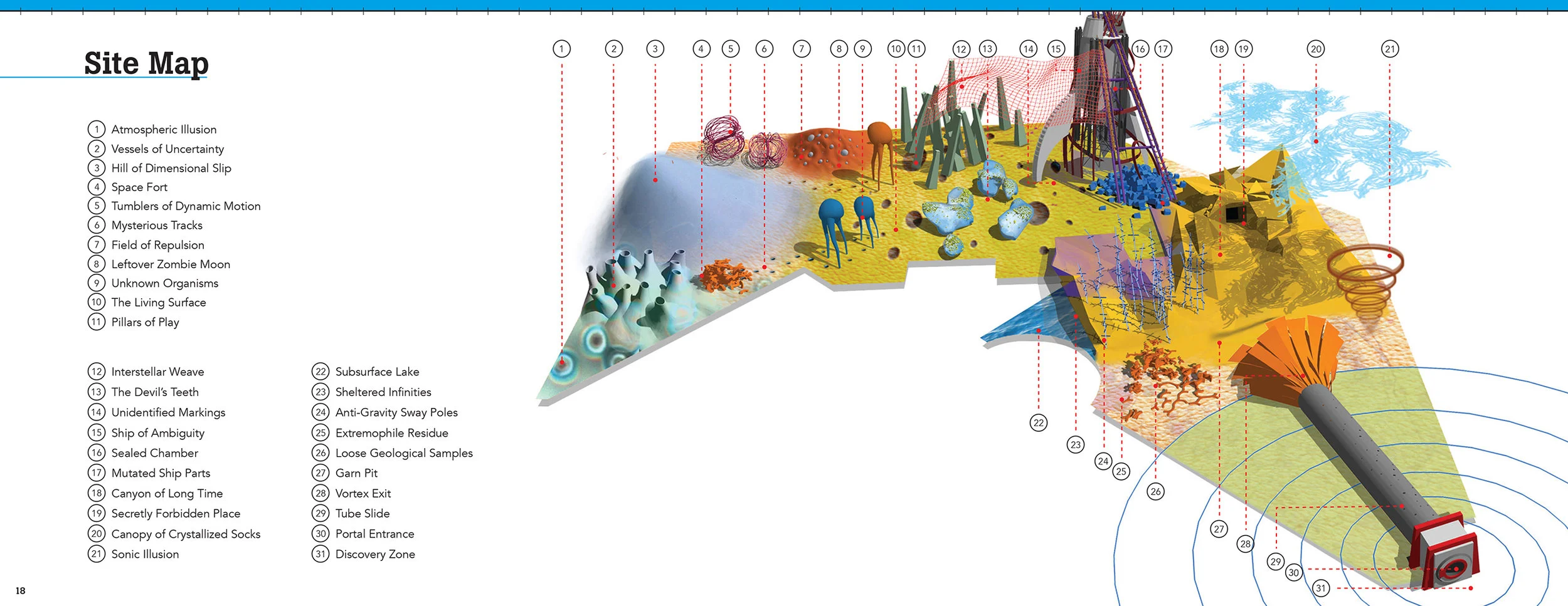 The ideas generated over the course of several months developed into a cohesive scheme for a rich, sculptural playground involving aspects of science and science fiction. I collaborated with a Pixar story artist to give the design a backstory and a narrative that emerges over time.